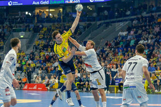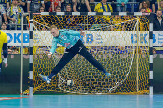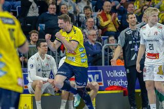 Löwe Tobias Reichmann freut sich über eine gelungene Aktion