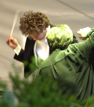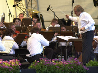 Ladenburg Klassik am Fluß 10/06/04 Dirigent Martin Panteleev Bild:Schwetasch. Erg. Bildtext: Zwei virtuose Meister ihres Fachs: Dirigent Martin Panteleev und der Weltklasse-Pianist Andrei Gavrilov. Erg. Klassik am Fluss.