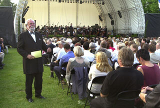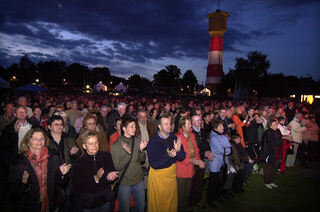 Ladenburg Udo Jürgens 09/06/05 Bild:Schwetasch. Erg. Bildtext: Abendliche Stimmung auf der Ladenburger Festwiese: Fast 4000 zahlende Zuschauer feierten das Solo-Programm von Udo Jürgens und trotzten den kühlen Temperaturen. Erg. Kleine Gartenschau 2005, Grünprojekt.