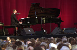 Ladenburg Udo Jürgens 08/06/05 Bild:Schwetasch. Erg. Bildtext: Der erfolgreiche Sänger und Komponist Udo Jürgens war gestern Abend zu Gast in Ladenburg am Neckar. Sein Solo-Konzert vor fast 4000 zahlenden Besuchern wurde zum Sahnehäubchen auf der Festtagstorte der kleinen Landesgartenschau. Erg. Grünprojekt, Kleine Gartenschau 2005. Bild erschien auf mna.