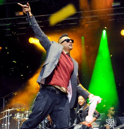 Ladenburg Festwiese Konzert Sean Paul 02/06/13 Bildtext: Eine tolle Schau bot der aus Jamaika stammende Weltstar Sean Paul. Er heizte den Besuchern mit Reggae- und Hip-Hop-Klängen mächtig ein. Bild: Schwetasch
