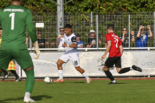 Waldhofs Djayson Cardoso Mendes (Nr.35) gegen Neckarelz Niklas Böhm.