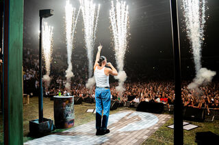 Bei den großen Abräumern "Roller" und "Kein Problem" gab es Feuerkaskaden, fast wie bei Rammstein.