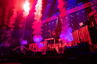 Die meisten Songs bestritt er ganz allein - nur unterstützt von einem DJ und der bildgewaltigen Bühnenkulisse. Sie bildet den Plattenbau auf, in dem der 24-Jährige in Ludwigshafen Gartenstadt aufgewachsen ist.