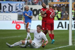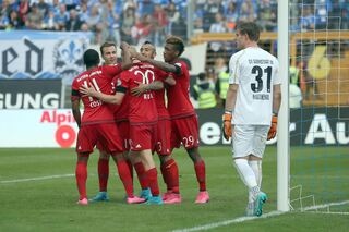 Der Münchener Sebastian Rode (M) jubelt nach seinem Treffer zum 0:3.