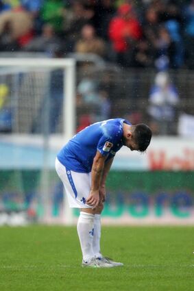 Der Darmstädter Jerome Gondorf steht nach dem Abpfiff im Regen auf dem Platz.