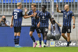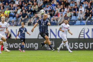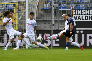 Zunächst gingen aber die Gäste aus Verl in Führung. Waldhofs Lucien Hawryluk muss einen Gegentreffer vom Ex-Waldhöfer Berkan Taz hinnehmen.