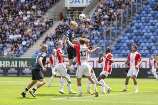 Malte Karbstein (#15, SV Waldhof Mannheim) im Kopfballduell
