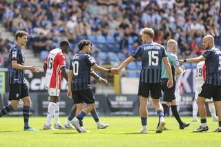 Arianit Ferati (#10, SV Waldhof Mannheim) und Malte Karbstein (#15, SV Waldhof Mannheim) klatschen sich ab nach dem 2:1.