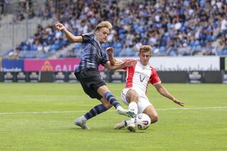 Nicklas Shipnoski (#7, SV Waldhof Mannheim) im Duell um den Ball.