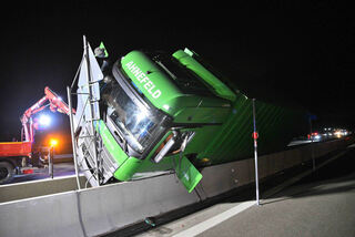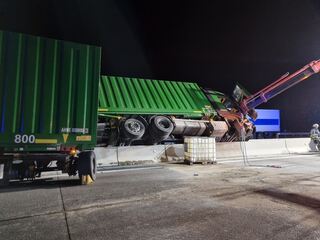 Der Lkw blieb letztlich zwischen den Mittelleitplanken liegen. Der Fahrer wurde verletzt in ein Krankenhaus gebracht.
