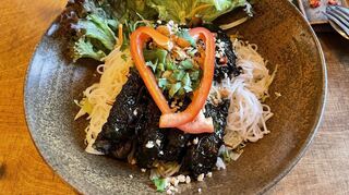 Nicht satt zu werden ist eh ausgeschlossen, denn Nem Cuon - Sommerrolle (5,50 Euro), Papaya-Salat (8,50 Euro) oder Banh Khoai Mon, ein Taro-Klebreis, mit Kokosmilch, Erdnuss und Kokosstreifen (5,90 Euro) warten ebenfalls auf der Karte - im vietnamischsischen Dorf am Luisenring.