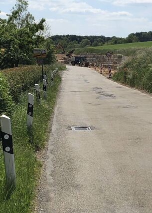 Eubigheim. Bei den Straßenbauarbeiten in der Gemeinde Ahorn gibt es große Fortschritte. Der Radweg zwischen Uiffingen und Eubigheim ist nun saniert und kann wieder benutzt werden. Die Baustelle stand nicht, da der Umfang etwas zugenommen hat. Es wurde an verschiedenen Stellen gearbeitet. Zur Zeit laufen auch wieder die Arbeiten an der K 2840, so wie auch geplant. Die Arbeiten an der Stützwand (Bild) werden mit einer Geschwindigkeitsbegrenzung auf der alten Kreisstraße durchgeführt. Die Vollsperrung ist laut Bürgermeister Elmar Haas in etwa drei bis vier Wochen zu erwarten. Bild: Gemeinde Ahorn