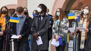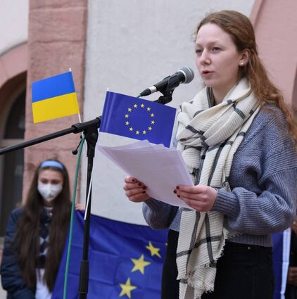 Wie groß die Erschütterung und das Ohnmachtsgefühl unter Jugendlichen angesichts des Krieges im Osten Europas sind, wurde gleich mehrfach deutlich. Immer wieder gab es Applaus auf die persönlichen Schilderungen und Friedensappelle der überwiegend jungen Rednerinnen.