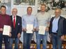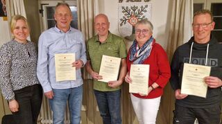 Götzingen. Bei der vergangenen Ortschaftsratssitzung hat Ortsvorsteherin Daniela Gramlich (links) folgende Bürger für mehrmaliges Blutspenden geehrt: Bernd Egenberger /Zweiter von links) für 125-maliges Spenden. Er ist Spitzenreiter in der Gesamtstadt und erhielt die DRK-Blutspender-Ehrennadel in Gold mit Eichenkranz und eingravierter Spendenzahl. Für 50-maliges Spenden ehrte die Ortsvorsteherin Ilse Aumüller und Bernd Wachter (Dritter von links). Zehn Mal spendete Stefan Fritz. Gramlich würdigte die Spender dafür, dass sie ohne Entgelt ihren „roten Lebenssaft“ zur Verfügung stellten. / jm