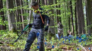 Buchen. Mit einer kleinen Schaufel und einem Metallstab wühlt ein Mann in dem von Laub bedeckten Waldboden. Eine kleine blaue Fahne zeigt ihm die Stelle an, wo er graben soll. Dann beendet er für einen Moment seine Arbeit, legt die Geräte beiseite und fast mit der Hand in das Erdloch, welches mittlerweile entstanden ist. "Sehr gut, Glas", sagt er, während er ein kleines Stückchen aufhebt.