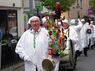 „Ich finde es schön, wie man hier Elemente der beiden Fastnachtswelten verbindet“, stellt Pfarrer Reith am Ende der Veranstaltung fest. Dann darf auch er den Blecker liebkosen, und zwar am Narrenbrunnen. Und tatsächlich: Der Priester wird für seine Mühen mit einem am Brunnen gezapften Becher Rotwein belohnt.