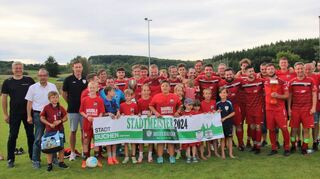 Buchen. Die Stadtmeisterschaft in Buchen ist auch nach vielen Jahren eine Erfolgsgeschichte. Altbürgermeister Josef Frank hatte sie einst ins Leben gerufen, um nach dem Motto „Sport verbindet“ die Stadt mit ihren Ortsteilen zusammenzuschweißen. Eingebunden in das 75-Jahr-Vereinsjubiläum war der VfL Eberstadt in diesem Jahr der Ausrichter. Bereits am Freitag wurden die ersten Vorrundenspiele ausgetragen, bis zum Sonntagabend war das Eberstadter Sportgelände umlagert von zahlreichen Fans, die ihren Teams die Daumen drückten. Der Samstag war gespickt mit weiteren Vorrundenspiel, ehe es am Sonntag mit den ersten Halbfinalbegegnungen um den Einzug ins Finale ging. Mit der Finalbegegnung zwischen der Spielgemeinschaft VfL Eberstadt/TSV Götzingen und der Spvgg Hainstadt steuerte die Veranstaltung am Abend auf den fußballerischen Höhepunkt zu. Dabei sicherte sich der Gastgeber mit einem 3:0-Sieg gleichzeitig nach der Meisterschaft, dem Pokalsieg und dem Gewinn der Stadtmeisterschaft das „Dripple“ – was noch keine Mannschaft zuvor geschafft hatte. Bürgermeister Roland Burger gratulierte der Mannschaft und überreichte Pokale und Geldpreise an die erfolgreichen Teams. Bild: Narloch