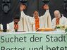 Um kein Risiko wegen der sehr unsicheren Witterungsverhältnisse einzugehen, hatte sich das Gemeindeteam mit Pater Daison darauf verständigt, auf die große Prozession durch den Ort zu verzichten und stattdessen an vier Stellen um die Kirche Station zu machen.