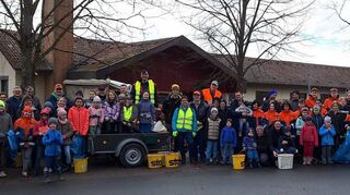 Gerchsheim. Zwölf Altreifen mit Felgen und Eternitplatten, Batterien und gebrauchte Ölkanister, leere Flaschen und befüllte Hundekotbeutel: Was bei der Umweltaktion des Obst- und Gartenbauvereins Gerchsheim in der Natur aufgesammelt wurde, war selbst für die Helfer erschreckend. In mehreren Gruppen schwärmten trotz Nieselregens rund 70 Freiwillige aus, darunter zahlreiche Kinder und 15 Mitglieder der Jugendfeuerwehr, um die Umwelt vor achtlos weggeworfenem Müll und Unrat zu säubern. Schnell hatte sich der bereitgestellte Anhänger mit den Müllsäcken befüllt. Christoph Eisele, Vorsitzender des Obst- und Gartenbauvereins, freute sich über die große Resonanz der Teilnehmer, was für ihn ein Zeichen für den Zusammenhalt und das Umweltbewusstsein ist. „Es ist toll zu sehen, wie sich alle für ein sauberes Dorf und eine saubere Umwelt einsetzen.“ Ortsvorsteher Peter Weingärtner, der sich ebenfalls an der Säuberungsaktion beteiligte, war verwundert über die vielen weggeworfenen Hundekotbeutel. Beide hoben aber das große bürgerschaftliche Engagement hervor und bedauerten, dass durch die Achtlosigkeit mancher Mitbürger solche Umweltaktionen überhaupt erst nötig werden. Bild: OGV