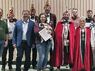 Den bisherigen Verlauf der Kampagne bezeichnete sie als „runde Sache“, wenn es auch in vielen Bereich der Erftalmetropole anders sei: Glashaus, Glasfaser-Ausbau, zweite Querspange, Erfapark, Eirich-Areal und weitere Kuriositäten zeigten auf, wie es bei nicht optimaler Kommunikation laufen kann. Umso schöner sei das „runde“ Motto des Ordens, das nicht nur absolut unpolitisch ist, sondern mit Sicherheit freudige Emotionen beim Publikum auslöst - steht es doch für überlegenen Teamgeist, Zusammenhalt und sportlichen Erfolg sondergleichen: Dass der Meisterpokal der Kreisklasse A im Fußball und der Meisterpokal in der Badenliga im Handball nach Hardheim gingen, verstand sich als perfekte Steilvorlage für einen Orden, der nicht nur rund wie ein Ball ist, sondern mit dem Lorbeerkranz als Zeichen des Sieges, einem Handballer und einem Fußballer auch an die großen TVH-Erfolge erinnert. So gerüstet, fiebert das Wolfsrudel der heißesten Phase der fünften Jahreszeit umso intensiver und erfreuter entgegen. Dass der Orden ein sportliches Motto bespricht, sorgte dieses Mal auch für illustren Besuch: So konnte man Marcel Steigerwald als Vertreter der TVH-Fußballer und Robin Steinbach als Vertreter der TVH-Handballer begrüßen – die sich sehr über den Orden freuten, stellt er doch eine weitere huldvolle Würdigung dar.