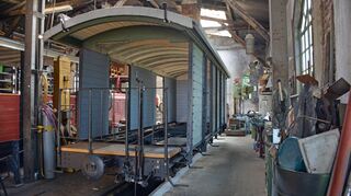 Waggon 113, der „Sommerwagen“, ist ebenfalls fertiggestellt. Er ist nur für den Personentransport vorgesehen, daher sind ausschließlich Sitzreihen im Wagen zu finden. An Waggon 89 wird gerade gearbeitet. „Er ist originalerhalten von 1900. Wir haben die Türen teilweise aufgearbeitet – eine Schiebetür und eine Flügeltür. Der Plan ist, bis zum nächstes Frühjahr fertig zu sein“, erklärte Simon Geist, der sich am Wagen zu schaffen machte. Früher war Nummer 89 zweigeteilt und wurde zum Transport von Gepäck und Post verwendet. Die Außenfarbe ist ein dunkles Grün. „Um den Waggon wieder originalgetreu zu streichen, haben wir extra Holzproben genommen“, erinnerte er sich. Da die Farbe abgeplatzt war, wusste keiner mehr, wie der Wagen ursprünglich aussah. Weil die ganzen Waggons aber auch von einer Lok gezogen werden müssen, wurde natürlich auch eine solche restauriert. Die Lok 22/02 war früher ein Teil des „Jagsttalkrokodils“ – ein Logo des Tiers erinnert noch heute daran. Die Diesellok wurde einmal „komplett aufgearbeitet“, weiß Scherhaufer. „Der Motorraum war vollkommen kaputt. Wir haben circa sechs Jahre gebraucht, um alles zu reparieren.“ Die letzten Runden im Jagsttal drehte sie 1988.