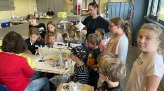 Külsheim. Einen abwechslungsreichen Vormittag erlebten die Kinder im Rahmen des Külsheimer Ferienprogramms bei der Weberei Pahl. Nach dem Empfang durch Lisa Pflugfelder wurde den jungen Gästen bei einem kurzen Rundgang erläutert, was das Unternehmen macht. Anschließend durften die Kinder ihren Ideen freien Lauf lassen und Stoffwimpel bemalen. Am Ende waren alle stolz auf die eigenen Kreationen, die jeder mit nach Hause nehmen durfte. zug/Bild: Weberei Pahl
