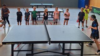 Külsheim. Den ersten Programmpunkt des Külsheimer Fereienprogramms gestaltete die Külsheimer Tischtennisabteilung unter dem Motto „Ping-Pong-Power, Ferienspaß und schnelle Bälle“. Das Programm umfasste Übungsspiele, Geschicklichkeits- und Koordinationsspiele und endete mit einem Turnier, bei dem jeder gegen jeden zwei Sätze spielte. Trotz des regnerischen Wetters draußen war die Stimmung in der Halle großartig. Alle Kinder erhielten Preise und Urkunden, und die besten drei Spieler des Turniers wurden mit Medaillen ausgezeichnet: Mia Würzberger holte Bronze, Elian Seitz Silber und Emily Baumann gewann Gold mit einem beeindruckenden 20:0 Satzverhältnis. Bild: FC TT