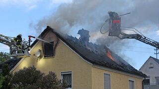 Die Löscharbeiten sind über die gesamte Zeit in vollem Gange. Heiko Wolpert, der stellvertretende Kreisbrandmeister, lobt später „die zielgerichtete, ruhige und geordnete, sehr gute Zusammenarbeit“ aller Einsatzkräfte, trotz größter Anspannung. Die beiden Drehleitern bekämpfen das Feuer aus luftiger Höhe, während ebenso vom Boden aus und mit einem gezielten Innenangriff agiert wird. Und trotzdem lodern die Flammen auch noch gegen 7 Uhr unterm Dach. Erst gegen 9.40 Uhr sind die Arbeiten endgültig beendet. Das Wohnhaus ist schwer beschädigt und nach Angaben der Polizei „bis auf Weiteres nicht mehr bewohnbar“. Der Sachschaden wird auf 300 000 Euro geschätzt.
