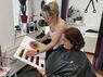 Das Thema des Shootings in Würzburg ist „Coastal glory“. Darauf sind Brautstyling, die Location und auch die Tischdekoration abgestimmt. Die „Braut“ bekommt „Mermaid“-Locken und selbst ihre kleine glänzende Handtasche sieht aus wie eine Perle. Meine erste Aufgabe besteht darin, das exklusive Brautkleid, von einer Designerin aus Berlin gemeinsam mit Nadine und der Fotografin Simone zu steamen. Das Kleid besteht aus mehreren Lagen Tüll, die nach oben in eine Korsage zusammenlaufen. Jede Lage des dünnen Stoffs muss extra gesteamt werden, damit es keine Falten wirft. Das ist gar nicht so einfach, bei so viel Stoff auf einmal Nadine hält den Bügel, während ich die oberen Stofflagen beiseite nehme und Simone alles glatt streicht.