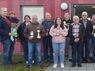 Lauda. Marlon ist laut und deutlich zu vernehmen. Dass sein Mitbewohner Richard plötzlich ins Freie befördert wird, gefällt ihm überhaupt nicht. Die beiden sind stolze Hähne mit prächtigem Gefieder und feuerroten Kämmen. Aufgeregt trippelt Marlon im Gehege hin und her und protestiert entschieden mit vehementem Krähen. Die sechs Hühner stimmen mit ihrem Gegacker ein. So ganz geheuer ist auch Hahn Richard die Situation nicht. Dennoch posiert er geduldig fürs Foto. Züchter Tobias Blessing hält den Hahn mit festem Griff an den Füßen und beruhigt das Tier.