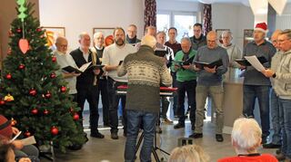 Mudau. „Zeit“ allein ist schon ein unbezahlbares Geschenk, aber gepaart mit Musik bringt es die Beschenkten ebenso zum Strahlen wie die Schenkenden. So geschehen im Mudauer Seniorenheim „Geras“, wo der Gesangverein „Frohsinn 1842“ unter Dirigent Gerhard Bönig ein kleines Weihnachtskonzert präsentierte. Der Beifall für die gefühlvollen und stimmungsvollen Stücke wie „Hymne an die Nacht“, „Weihnachtsglocken“, „Fröhlich Weihnacht überall“ und das „Trommellied“ – bei dem man einfach mitwippen musste – war grandios. Dann luden die Sänger ihr Publikum ein, bei „Stille Nacht“ und „O du fröhliche“ mitzusingen, und das machte allen Spaß. Die Sänger durften natürlich nicht abtreten ohne Zugabe, wobei alle mitsangen beim abschließenden „Süßer die Glocken nie klingen“. ./ L.M