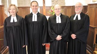 Jeder Pfarrer habe dabei seine speziellen Fähigkeiten und „das Privileg, sich intensiv mit den Schriften der Bibel zu beschäftigen und zu erleben, wie sie einen immer wieder neu und anders ansprechen“. In Verkündigung und Seelsorge solle dann „Gottes lebendiges, tröstliches und ermutigendes Wort aufleuchten ganz nah bei den Menschen“. Einen wichtigen Aspekt des Pfarrdienstes sprach dazu Schuldekan Hans-Jürgen Nonnenmann an: Zur Verkündigung gehöre auch der Unterricht, denn „Kinder brauchen Wurzeln und Flügel“. Zur Wurzelbildung sei der Religionsunterricht wunderbar geeignet, wenn er „die alten Erzählungen lebendig werden lässt und die Sehnsucht nach glückendem Leben die Flügel der Kinder ausbilden hilft“. Dass die beiden Vikare – die ab jetzt „Pfarrer“ heißen – das ebenso sehen, machten sie in ihren Vorstellungsworten deutlich. Er habe, so Michael Bauer, „den Glauben erlebt als etwas, das Kraft gibt, Freude zum Leben“.