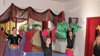 Die Tanzvilla hat sich dem orientalischen Tanz verschrieben, einem Sport, der mit seinen isolierten Bewegungen tiefe Muskelschichten erreicht. Das ist eine ganz spezielle Körperertüchtigung: mit arabischem Grundschritt, Hüftkippe und -wippe, mit Kreuz-, Kamel- und Katzenschritt, dem typischen "Shimmy", also dem rhythmischen Zittern der Hüften. Gut sei das für die Konzentration, perfekt als Beckenbodentraining, ganz nebenbei dank Körper-Erfahrung auch bestens geeignet zur Stärkung des Selbstbewusstseins, berichten die Vereinsvorsitzende und Co-Trainerin Angela Kopanitsak.