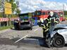 Laut Angaben der Polizei waren auf dem Streckenabschnitt der Kaiserstraße zwei Autos frontal zusammengestoßen. Dabei wurde eine Person schwer verletzt, eine weitere leicht. Eines der Fahrzeuge fing Feuer und brannte aus.