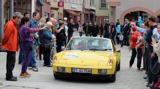 Damit endete aber noch nicht das rasante Spektakel in der Stadt, denn die Fahrzeugklassiker fuhren danach weiter im Minutentakt durch die Fußgängerzone, um sich ihren Stempel abzuholen. Die Begeisterung unter den vielen Zaungästen entlang der Fahrtstrecke von der Einfahrt von Külsheim über die obere Hauptstraße, den Schlossplatz und die Fußgängerzone hätte größer nicht sein können. Es gab viele „Benzingespräche“ unter den Fans dieser schönen Porsche-Klassiker, die man nur selten in diesen zahlreichen Baureihen aus fünf Jahrzehnten zu sehen bekommt. Kurz vor 15 Uhr trafen die letzten Autos in der Stadt ein. Das Endziel der dritten Tour der zweiten „Röhrl-Klassik „war am Samstagnachmittag Rothenburg. Hier endete gleichzeitig die dreitägige Rallye, die viele Porsche-Fans in der Region begeisterte.