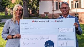 Amorbach/Walldürn. Wo am 2. Juli über 200 begeisterte Gäste saßen und der Zweitauflage des Gartenkonzertes „Mother Earth“ lauschten, überreichte Hannes Wolf, Vorstandsmitglied der Joachim & Susanne Schulz Stiftung, dieser Tage Christine Lehner, Leitung und Geschäftsführerin des Odenwald Hospizes Walldürn, einen Scheck über 2614 Euro. Diese Spendensumme kam über die Eintrittsgelder des 2. Open-Air-Benefizkonzertes, welches im Garten der Schulz Stiftung in Amorbach stattfand, zusammen. Das Programm für den wohltätigen und ausverkauften Kulturabend hatten zwölf Studierende der Staatlichen Hochschule für Musik und Darstellende Kunst Mannheim gemeinsam mit ihrem Dozenten Christian Roos aus Buchen zusammengestellt. Lehner dankte der Joachim & Susanne Schulz Stiftung für die großzügige Spende: „Sie ist eine große Hilfe, auch weiterhin schwerstkranken und sterbenden Menschen, ein würdevolles und friedliches Sterben zu ermöglichen“. Bild: Joachim & Susanne Schulz Stiftung