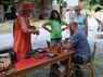 Viel Spaß hatten die Kinder beim Drechsler. Er zeigte auf seiner Drechselmaschine, wie Kreisel und andere kleine Gegenstände aus Holz hergestellt werden.