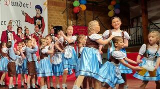 Der erste Schautanz des Abends, „Feiern wie in Bayern“, gehörte der Bambinigarde der FG. Das trauliche Startschunkeln der Kleinen zur „Bayerischen Gemütlichkeit“ war nur ein irreführender Bluff – denn schon rockten die Kleinsten zum anschließend eingespielten Alpenrock, unter dem Johlen und Pfeifen der im Saal feiernden Narren. Die Kleinsten zelebrierten ein weiß-blaues Gastspiel bayerischer Lebensfreude im Ländle, dessen konditionelle Anforderungen die Bambini mit Bravour beherrschten – inklusive abgelieferter Spagate und geschlagener Räder. Trainiert werden die Jungen und Mädchen von Anja Brosch, Anja Goos und Tabea Hartwig.