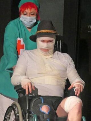 Beim dritten Auftritt der Sandfrösch ging es in die Boxtaler „Rose“, wo deren Wirtin schwer beschäftigt war. Zu den Stammgästen gehört die Mondfelder Jägervereinigung, deren Mitglieder mit Jagderfolgen prahlten. Einem bekam die Jagd im Wertheimer Wald aber gar nicht, denn aus seiner „Höhle“ kam kein Tier, sondern der Zug.