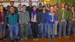 Im Finale in Buchen hatten die Schützen des SV Hainstadt die ruhigste Hand und das sicherste Auge und gewannen den Pokalwettbewerb mit sehr guten 1141 Ringen. Die Ergebnisse: Finale: 1. SV Hainstadt (Andreas Stössel, Dominik Benning, Patrick Scheuermann) 1141 Ringe 2. KKS Osterburken I (Philipp Englert, Sven Klimmer, Sascha Gorbowoj) 1130 Ringe 3. SG Buchen (Oliver Schmitt, Rebecca Walrapp, Thorsten Konrad) 1125. - Einzel: Philipp Englert, KKS Osterburken, 387, Andreas Stössel, SV Hainstadt, 385, Sven Klimmer, KKS Osterburken, 378, Dominik Benning, SV Hainstadt, 378 und Patrick Scheuermann, SV Hainstadt, 378. Das Bild zeigt die erfolgreichen Schützen des SV Hainstadt mit den weiteren Finalteilnehmern sowie dem stellvertretenden Kreisschützenmeister Wilfried Nickel (rechts). bie / Bild: Biemer