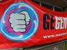 Neben dem Kiosk hat die Mannheimer IG Metall ein kleines Zelt aufgebaut, darunter einen Ständer mit Mikrofon. Die Gewerkschaft will Druck machen auf das GE-Management. Rund 300 Teilnehmer sind auf der Kundgebung. Sie tragen Spruchbänder mit der Aufschrift „Wer sich nicht wehrt, macht was verkehrt! “, „Wandle Frust in Widerstand!“ und „Wir GEben Gas für unsere Arbeitsplätze!!“.
