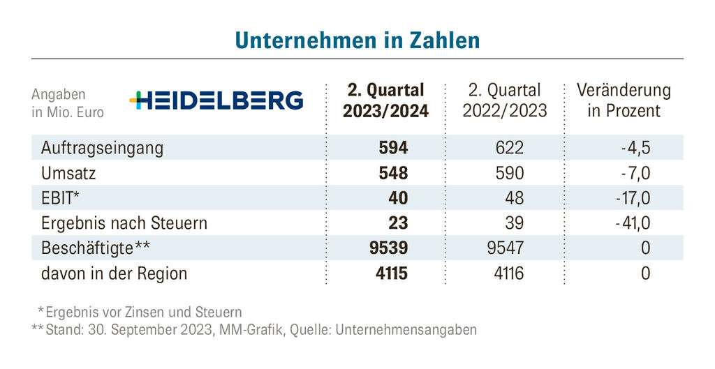 Wiesloch/Walldorf. Gute Geschäfte im Verpackungsdruck haben Heidelberger Druckmaschinen ein solides erstes Halbjahr gesichert. Die ersten sechs Monate des laufenden Geschäftsjahrs 2023/24 seien trotz „anhaltend schlechter wirtschaftlicher Rahmenbedingungen erfolgreich“ verlaufen, sagte Vorstandschef Ludwin Monz, als er am Mittwoch die Zahlen für das zweite Geschäftsquartal des Unternehmens vorstellte.